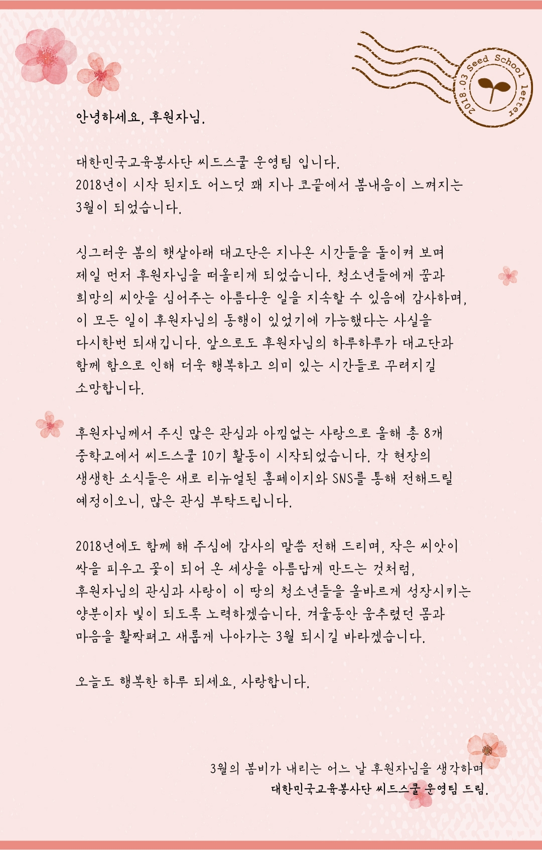 [후원안내] 편지가 도착했습니다. 2018.03.15