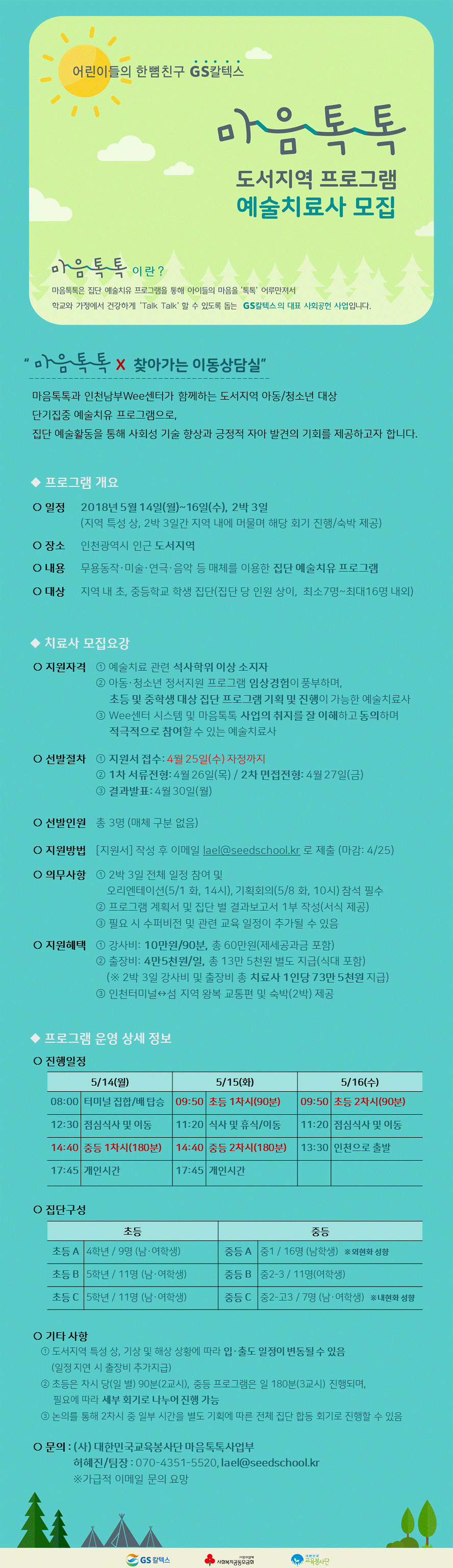 [모집공고] 마음톡톡 - 도서지역프로그램 예술치료사 모집(~4/25) 2018.04.20