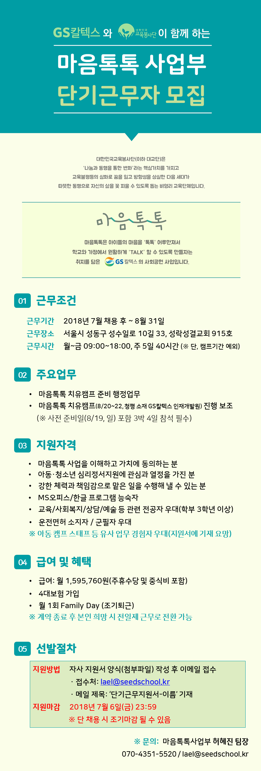 [채용공고] 마음톡톡사업부 단기근무자 모집 (채용완료, 마감) 2018.06.15