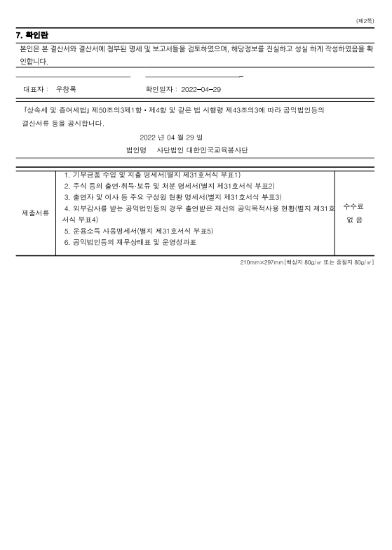 2021년 공익법인 결산서류등 공시_표준서식 2022.05.06