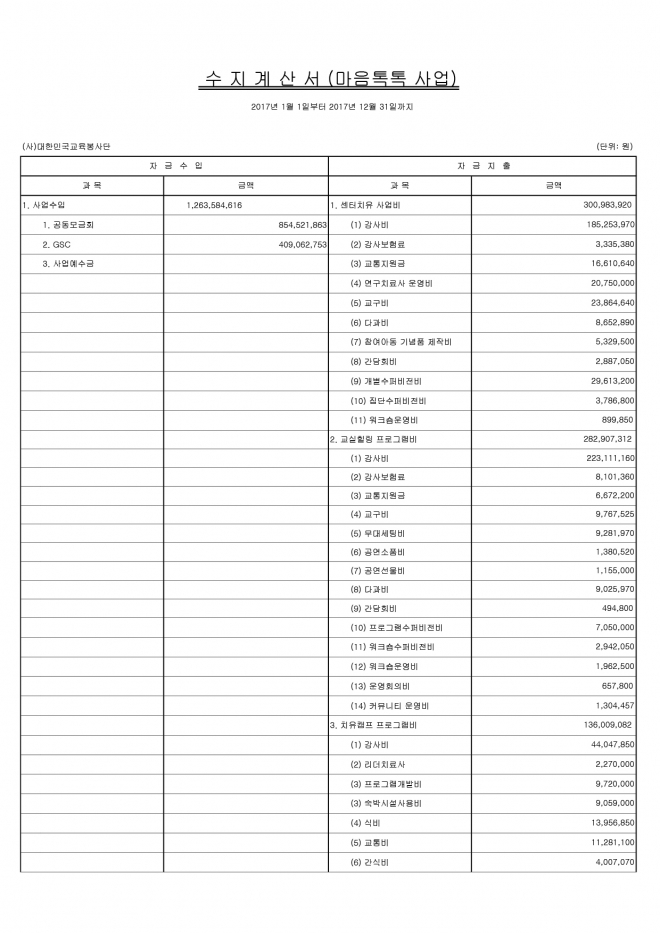 첨부파일 :  2017년 재무제표(대교단)_수지계산서-40.pdf
