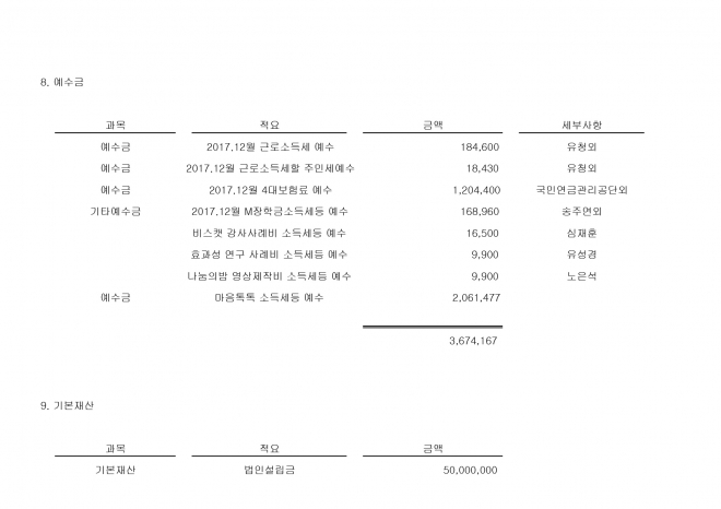 2017년 결산 재무제표 및 감사보고서 2018.03.07